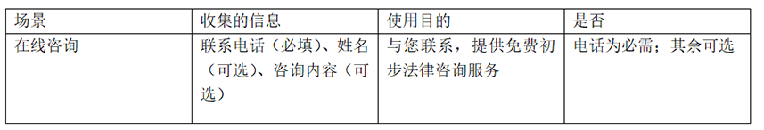 我们仅在您主动提交咨询表单时收集必要信息,具体如下: